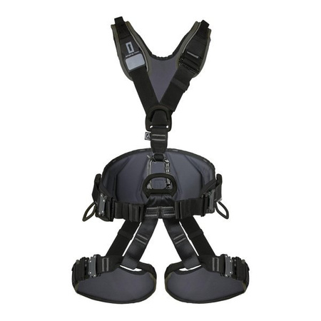 Fully adjustable harness for a rope access with a padded wide waist belt, leg loops and shoulder straps. Suitable also for work positioning, fall arrest and work restraint situations.