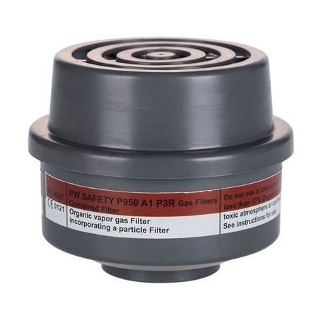 P950 to kombinowany filtr typu A1P3. Klasyfikowany jako filtr klasy 1 dla gazów i klasy 3 dla cząstek, może być stosowany do ochrony przed szkodliwymi substancjami, rozpuszczalnikami, toksycznymi cząstkami i mikroorganizmami. System łączenia zapewnia bezpieczne połączenie między maską a filtrem. Filtr ten jest kompatybilny z półmaskami P410.