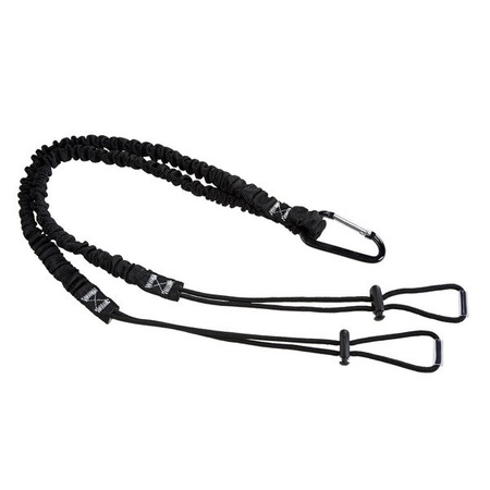 Podwójna elastyczna smycz na narzędzia. Chroni narzędzia przed niebezpiecznymi upadkami stanowiącymi zagrożenie dla bezpieczeństwa podczas pracy na wysokości. Bezpieczne obciążenie robocze 3 kg.